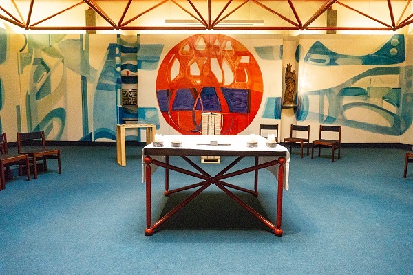 Die Gestaltung der Decke, die durch ihre Verstrebungen an kristalline Strukturen erinnert, deutet auf das himmlische Jerusalem hin. Der Altar weist durch dieselbe Formgebung auf die Verbindung irdischen mit der himmlischen Liturgie hin.