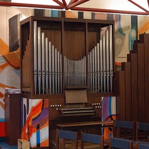 Der Ambo als Tisch des Wortes und Ort der Lesung der Heiligen Schrift wurde 2005 vom Linzer Künstler Gerhard Brandl aus Stapeln theologischer Schriften gestaltet.
