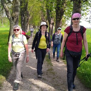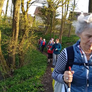 Wanderführerin und Pilgerbegleiterin Sabina Haslinger pilgerte im April 2023 für die kfb mit Frauen aus ganz Oberösterreich 3 Tage lang von Gmunden über den Traunfall nach Vorchdorf.